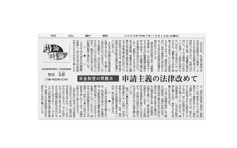 「持論時論」 年金制度の問題点 申請主義の法律改めて