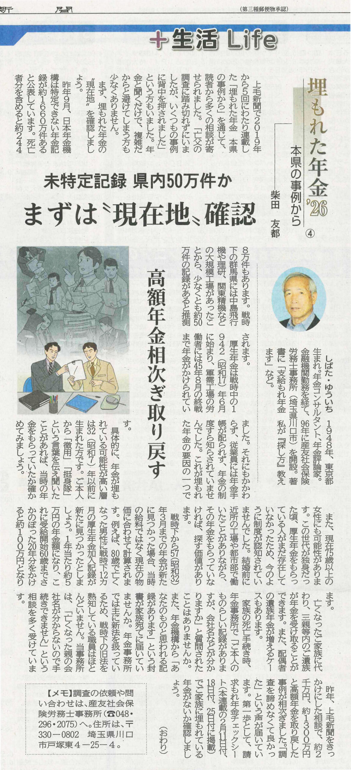 埋もれた年金を取り戻す取り組みが新聞に掲載されました。